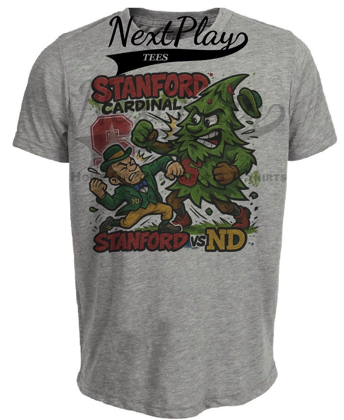 Stanford Cardinal vs. Notre Dame Fighting Irish Retro Rivals Football Artwork Heather Gray Sublimated T-Shirt