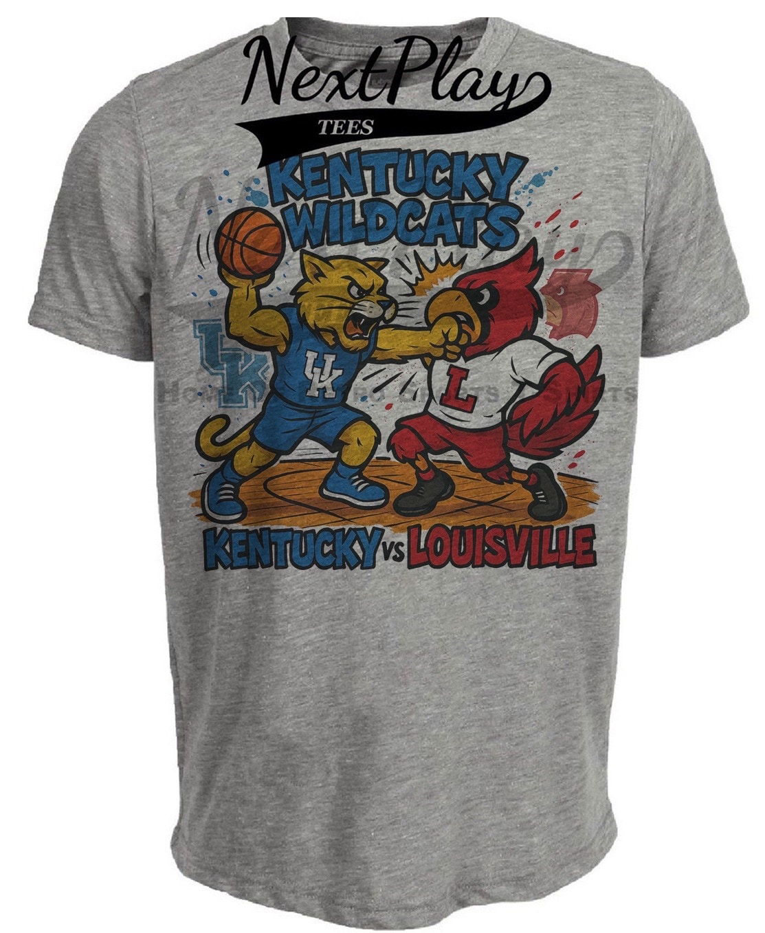 Kentucky Wildcats vs. Louisville Cardinals Retro Rivals Basketball Artwork Heather Gray Sublimated T-Shirt