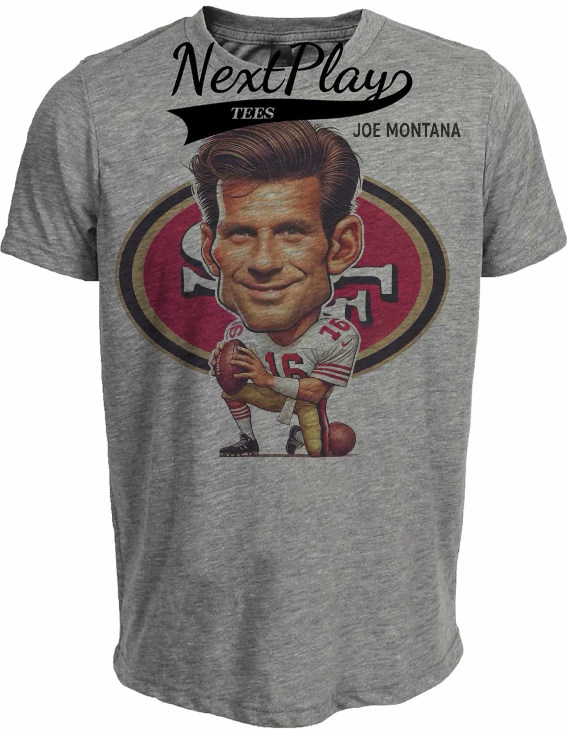 San Francisco 49ers Joe Montana Exclusive Retro Football 1984 Artwork Heather Gray Sublimated T-Shirt