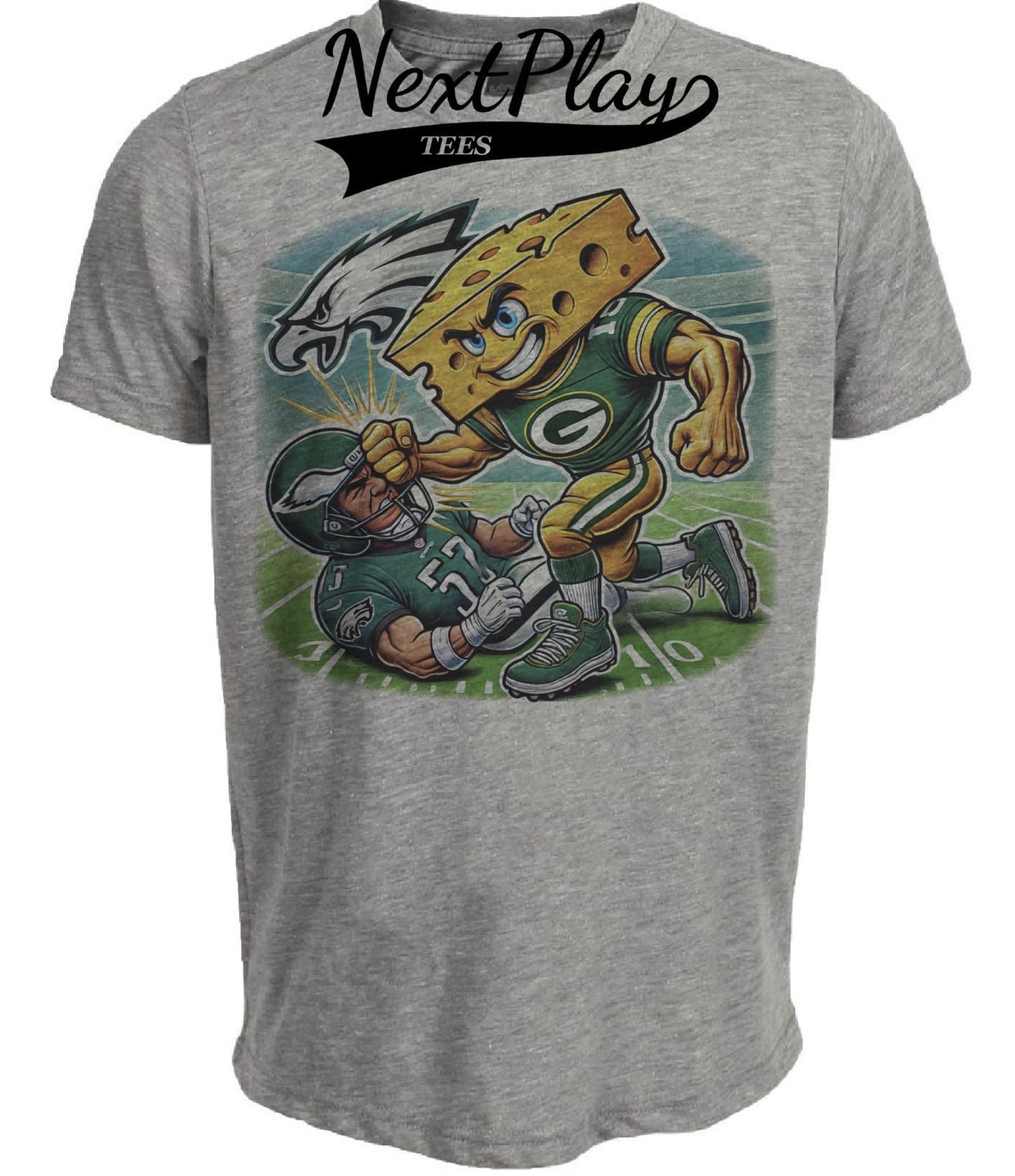 Green Bay Packers vs. Philadelphia Eagles Exclusive Retro Rivalries Football Punch Artwork Heather Gray Sublimated T-Shirt