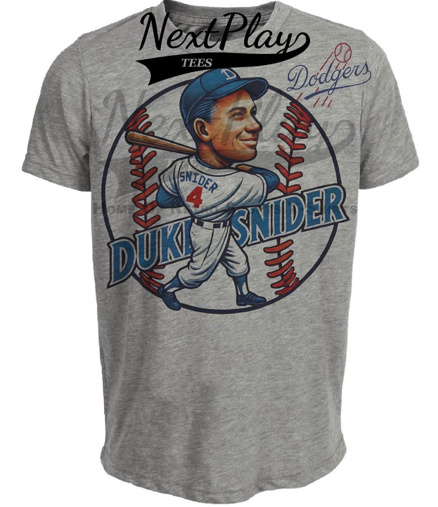 Los Angeles Dodgers Duke Snider Exclusive Retro Baseball Artwork Heather Gray Sublimated T-Shirt