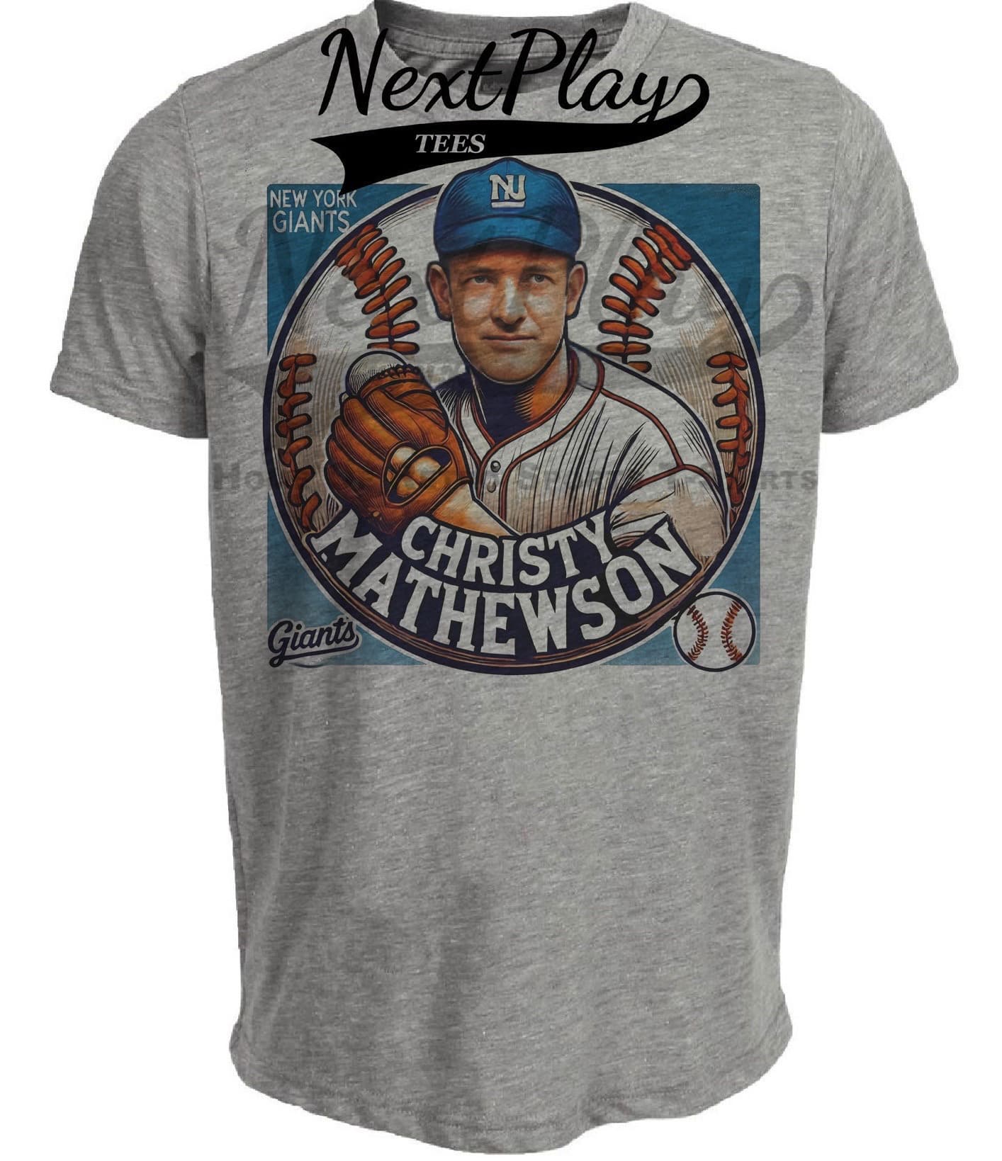 New York Giants Christy Mathewson Exclusive Retro Baseball Artwork Heather Gray Sublimated T-Shirt