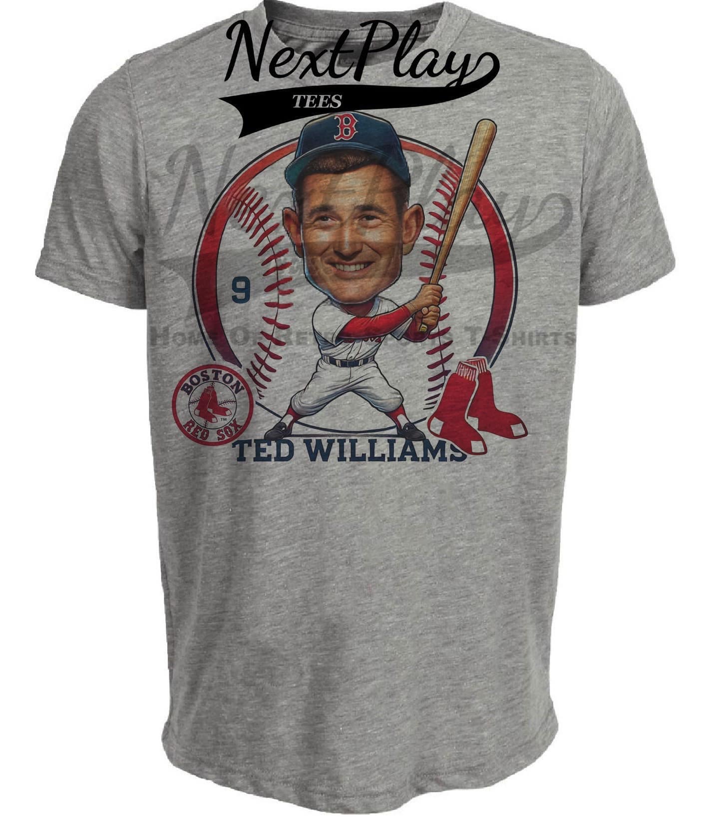 Boston Red Sox Ted Williams Exclusive Retro Baseball Artwork Heather Gray Sublimated T-Shirt