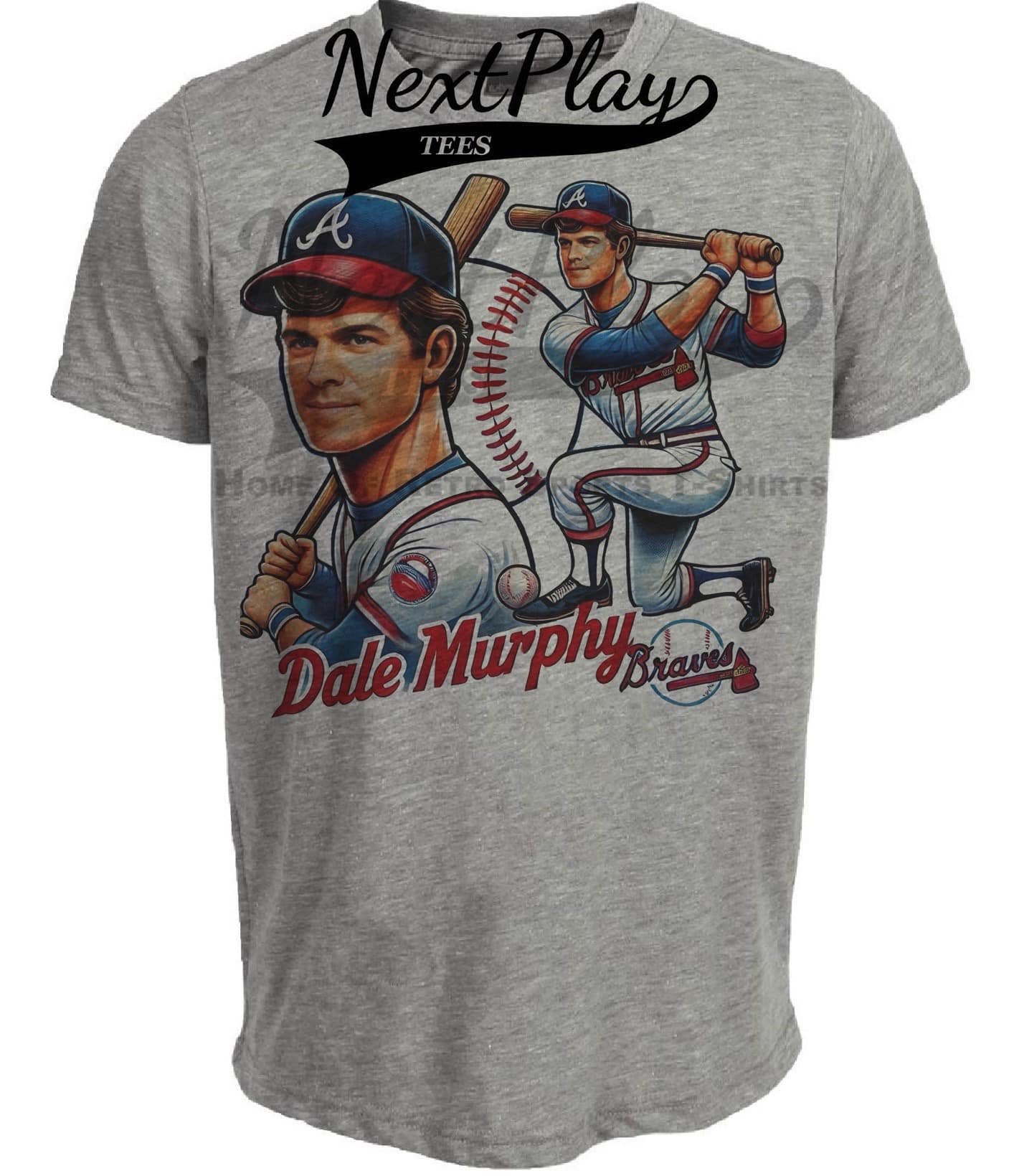 Atlanta Braves Dale Murphy Exclusive Retro Baseball 1979 Artwork Heather Gray Sublimated T-Shirt