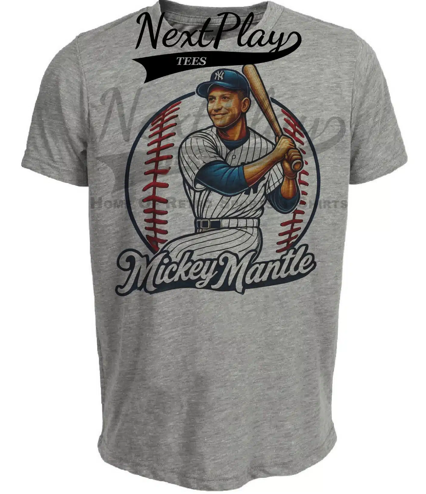 New York Yankees Mickey Mantle Exclusive Retro Baseball 1955 Artwork Heather Gray Sublimated T-Shirt
