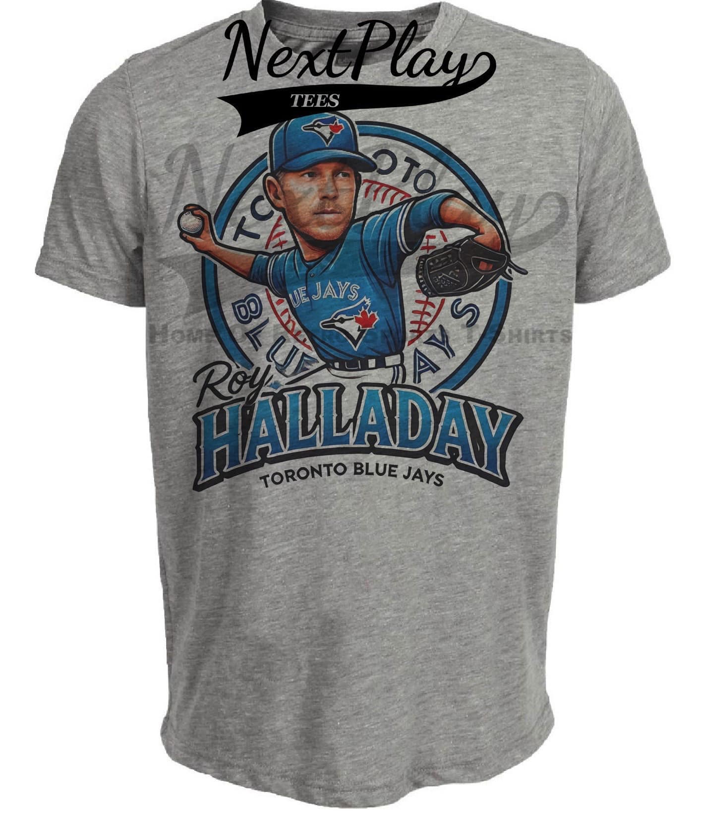Toronto Blue Jays Roy Halladay Exclusive Retro Baseball Artwork Heather Gray Sublimated T-Shirt