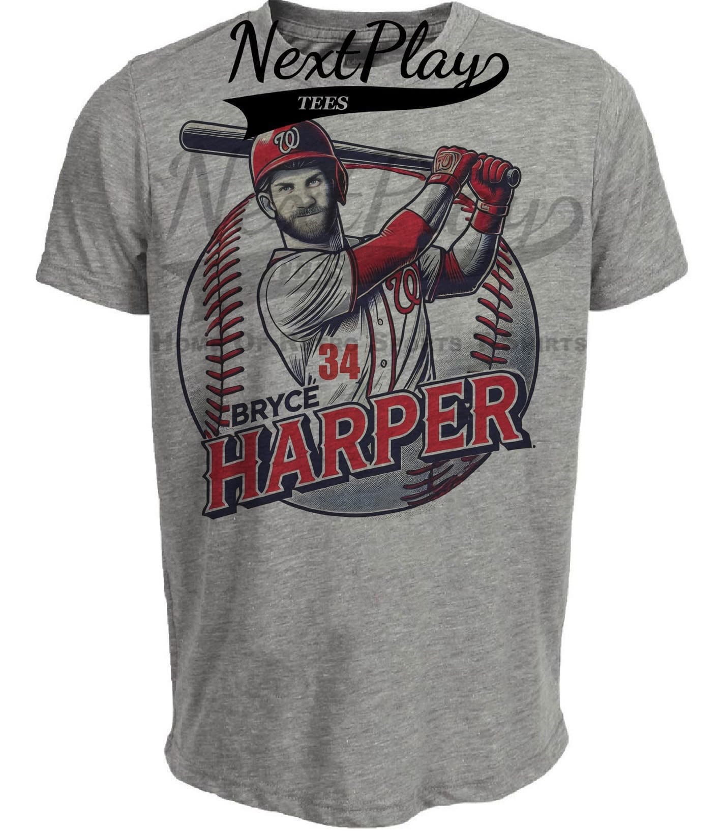 Washington Nationals Bryce Harper Exclusive Retro Baseball Artwork Heather Gray Sublimated T-Shirt