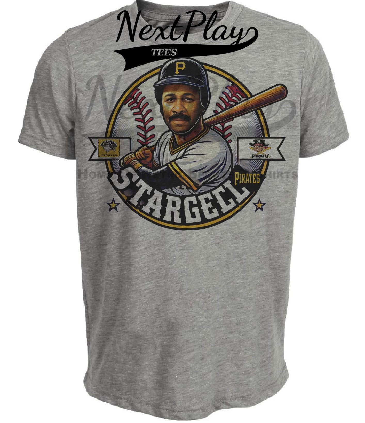 Pittsburgh Pirates Willie Stargell Exclusive Retro Baseball Artwork Heather Gray Sublimated T-Shirt