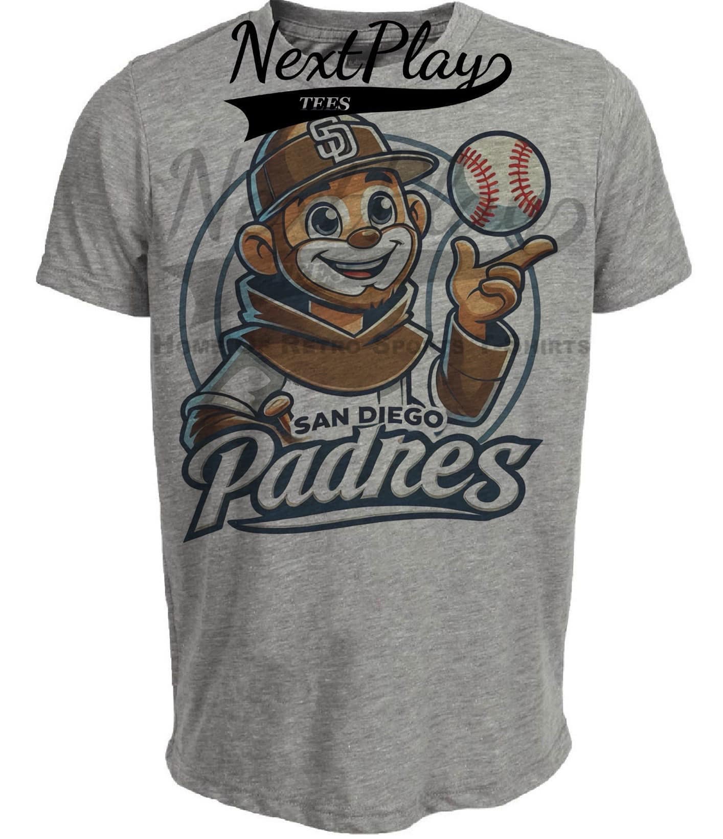 San Diego Padres Exclusive Retro Baseball Mascot Artwork Heather Gray Sublimated T-Shirt