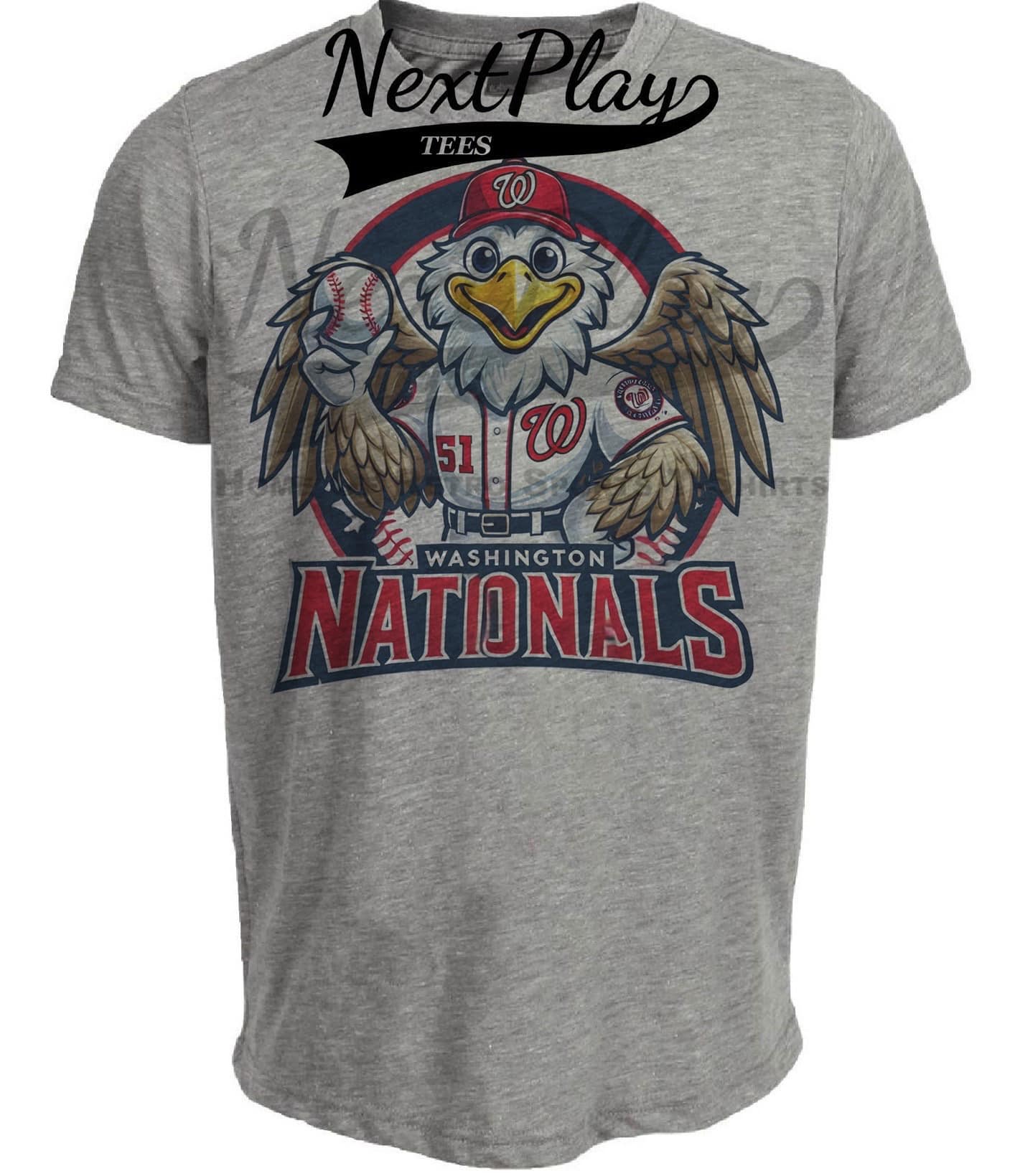 Washington Nationals Exclusive Retro Baseball Mascot Artwork Heather Gray Sublimated T-Shirt