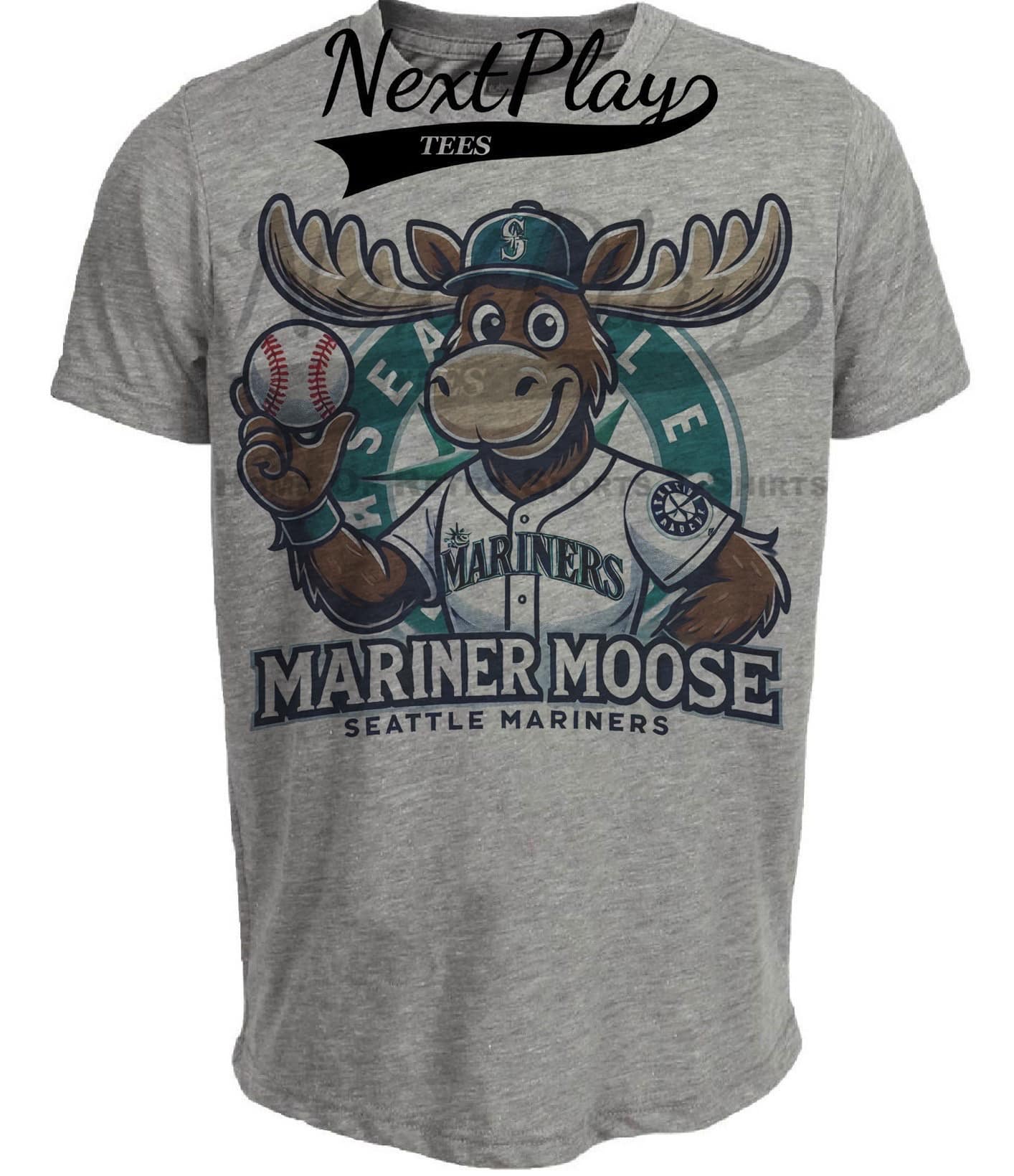 Seattle Mariners Exclusive Retro Baseball Mascot Artwork Heather Gray Sublimated T-Shirt