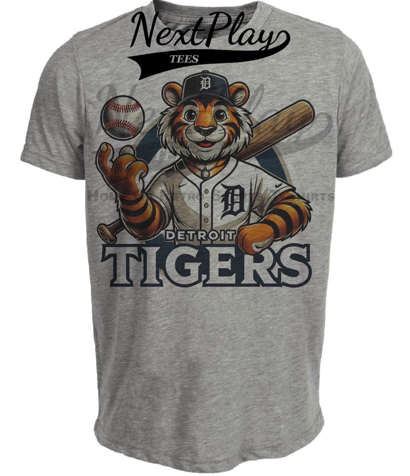 Detroit Tigers Exclusive Retro Baseball Mascot Artwork Heather Gray Sublimated T-Shirt