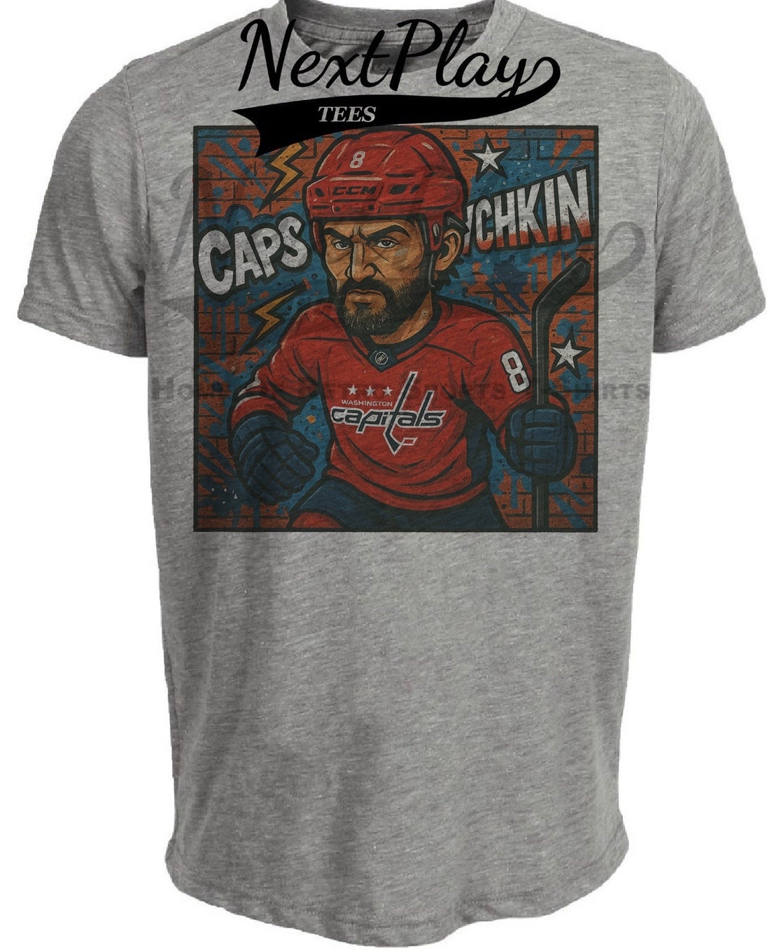 Washington Capitals Alex Ovechkin Caricature Exclusive Retro Hockey Artwork Heather Gray Sublimated T-Shirt