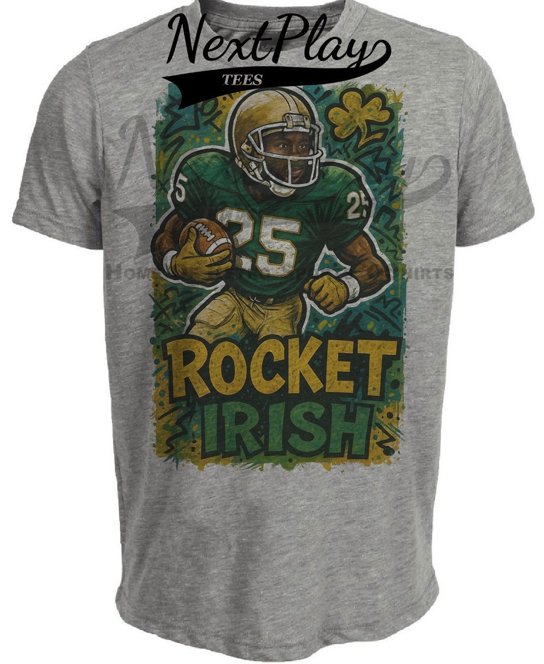 Notre Dame Fighting Irish Rocket Raghib Ismail Exclusive Caricature Football Artwork Heather Gray Sublimated T-Shirt
