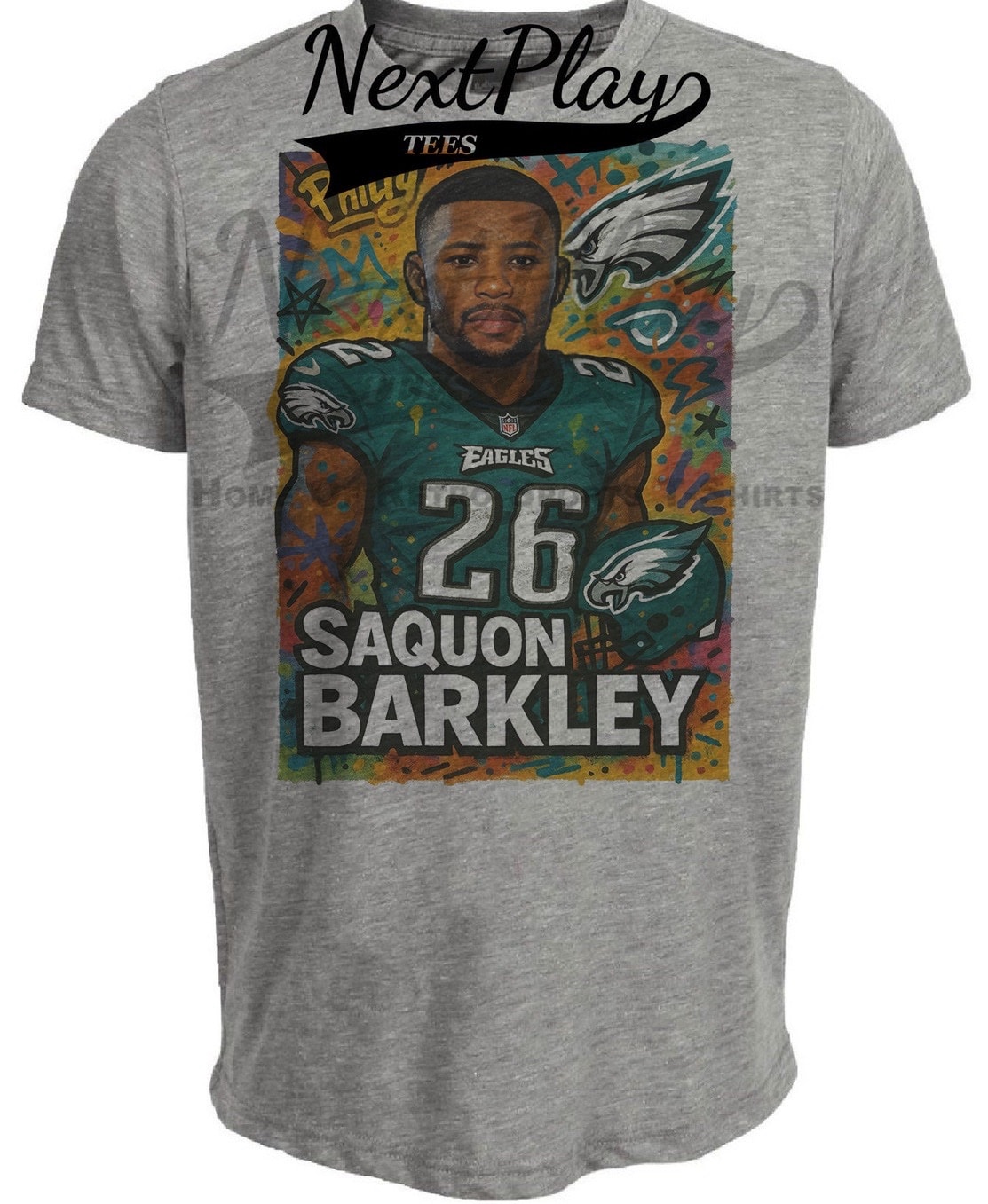 Philadelphia Eagles Saquon Barkley Exclusive Caricature Football Artwork Heather Gray Sublimated T-Shirt