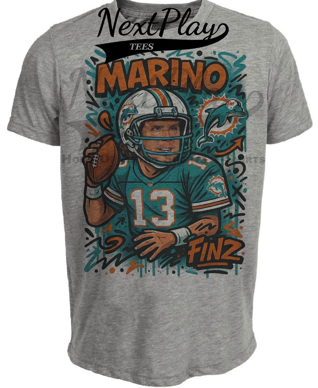 Miami Dolphins Dan Marino Exclusive Caricature Football Artwork Heather Gray Sublimated T-Shirt