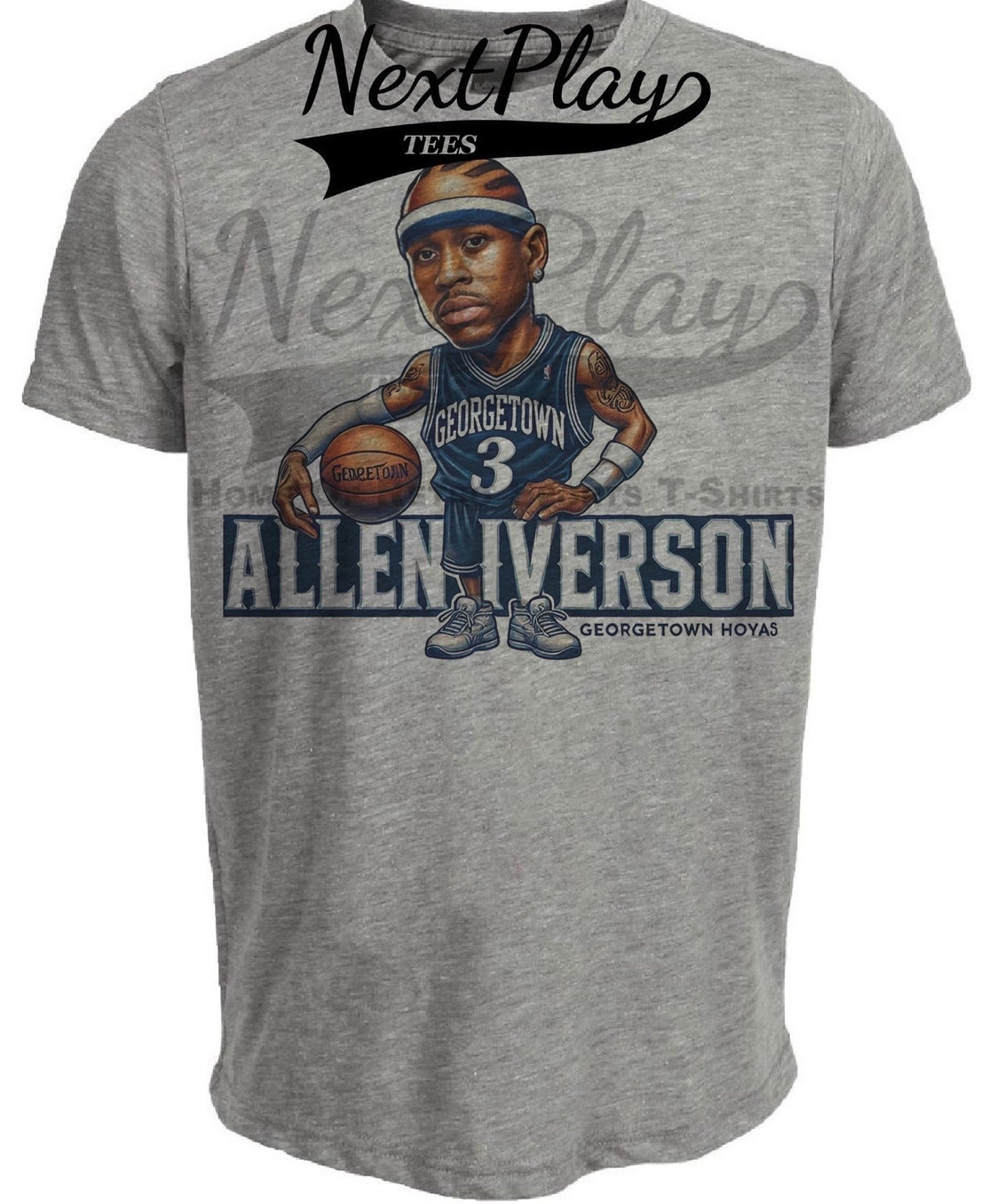 Georgetown Hoyas Allen Iverson Exclusive Retro Basketball 1994 Artwork Heather Gray Sublimated T-Shirt