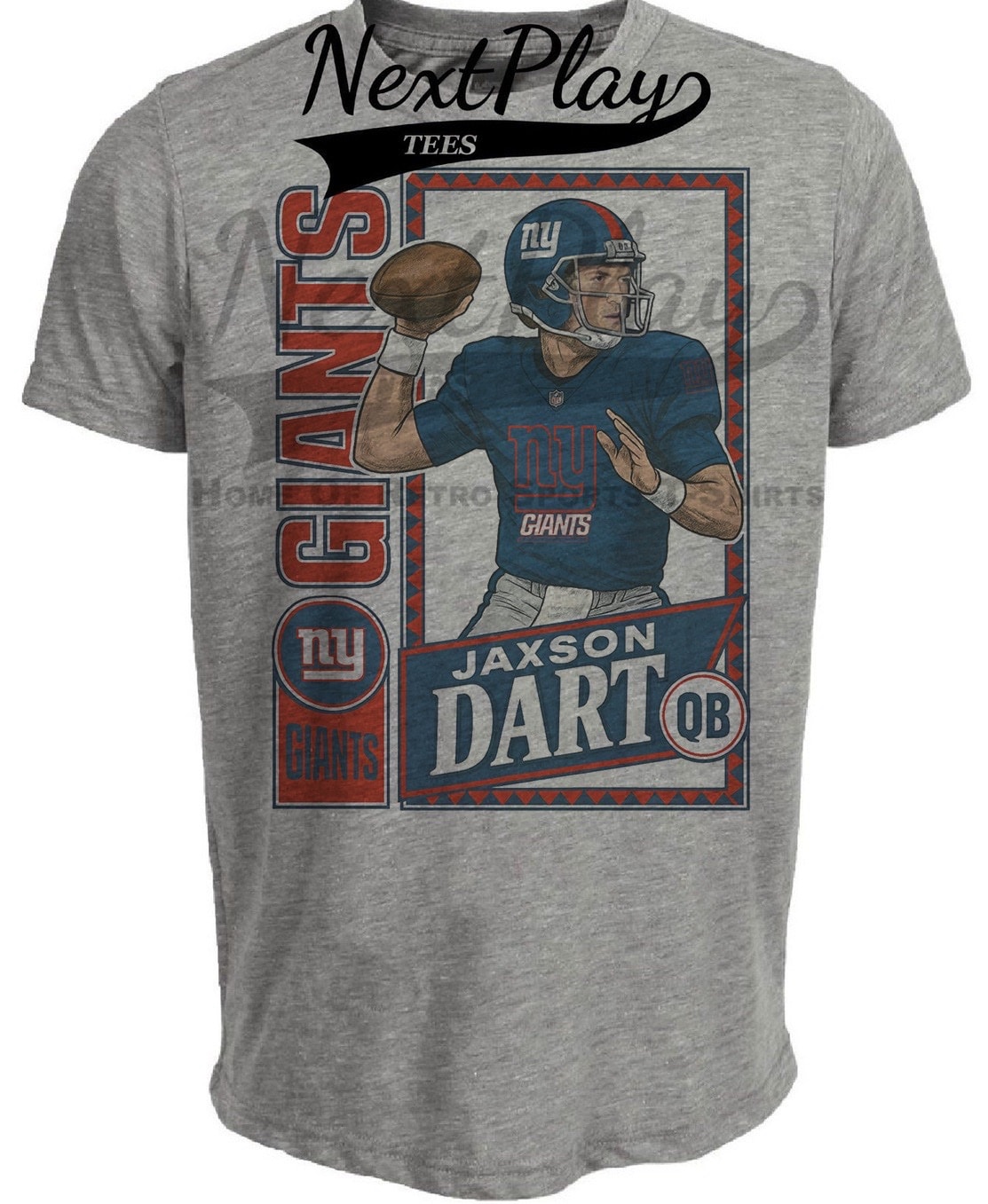 New York Giants Jaxson Dart Exclusive Retro RC Football Artwork Heather Gray Sublimated T-Shirt