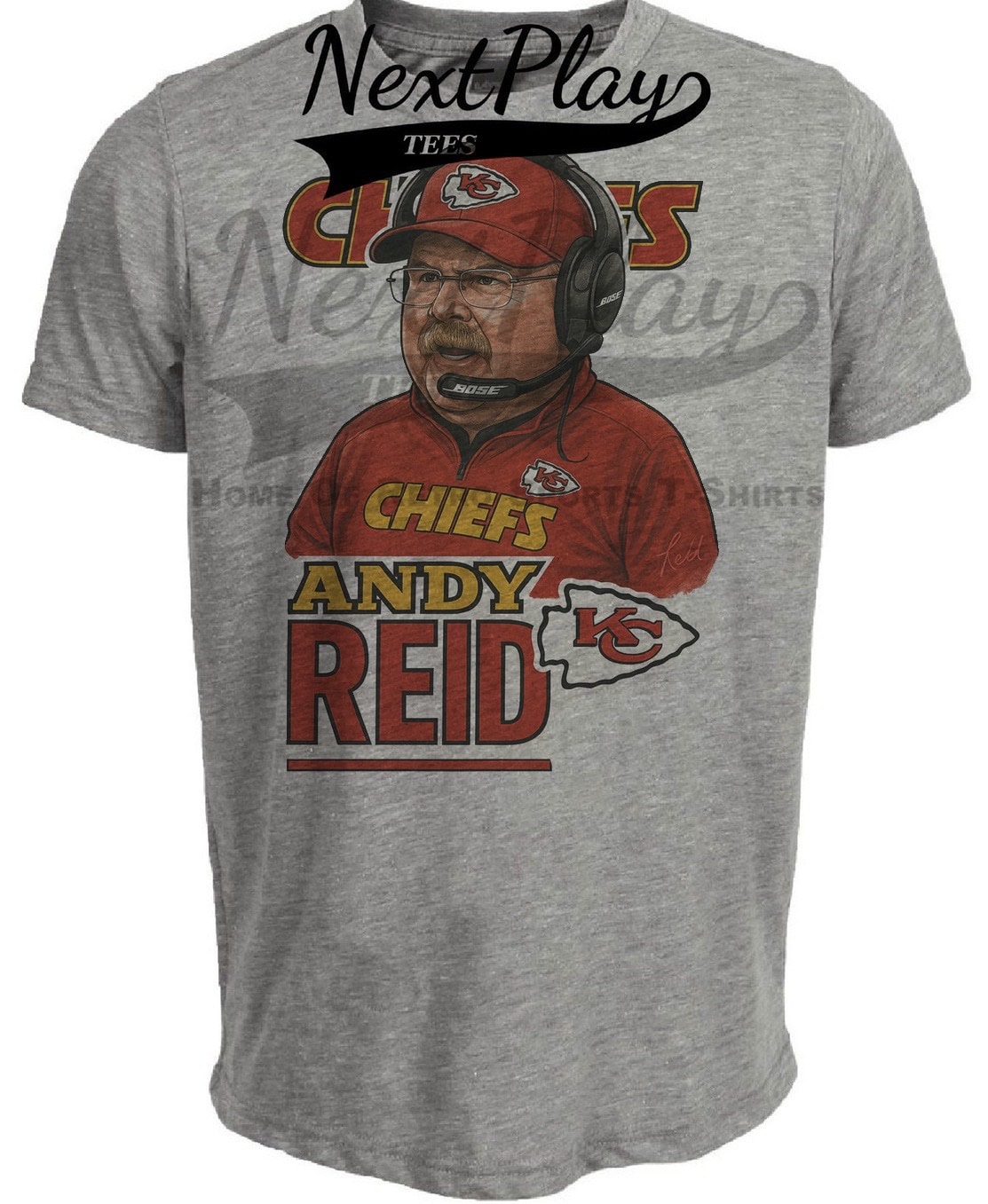 Kansas City Chiefs Coach Andy Reid Exclusive Caricature Football Artwork Heather Gray Sublimated T-Shirt
