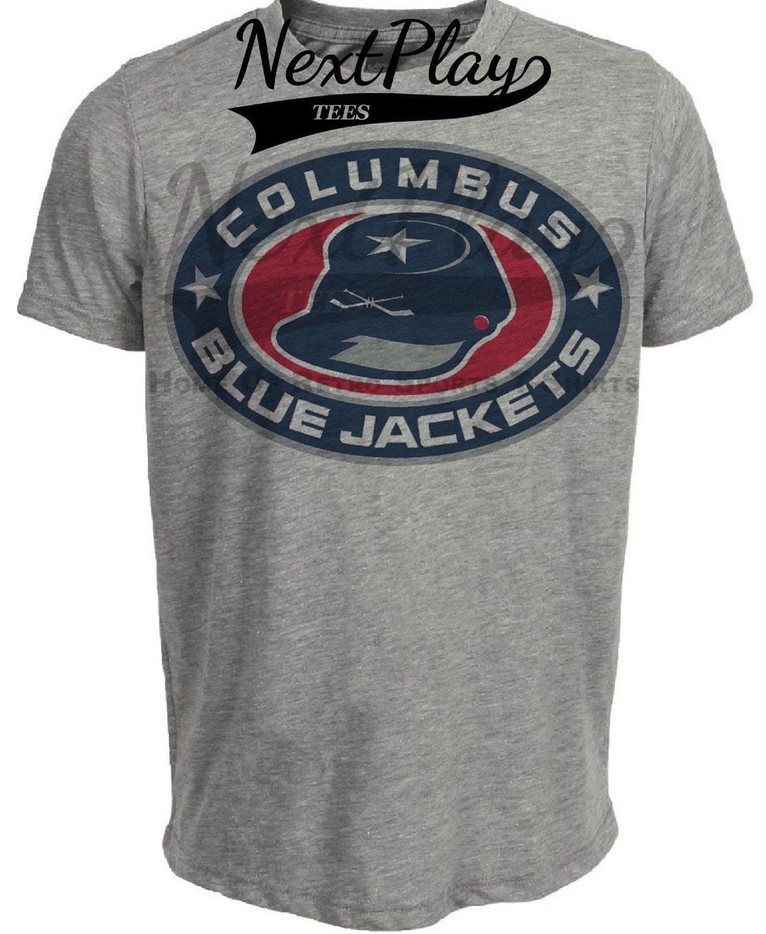 Columbus Blue Jackets Retro Hockey Cap Artwork Heather Gray Sublimated T-Shirt