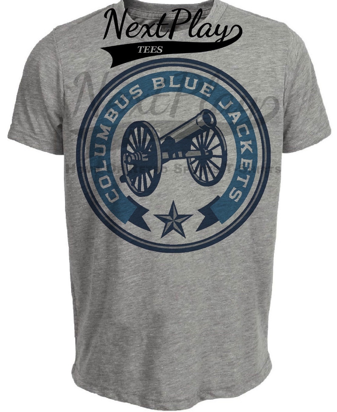 Columbus Blue Jackets Retro Hockey Cannon Artwork Heather Gray Sublimated T-Shirt