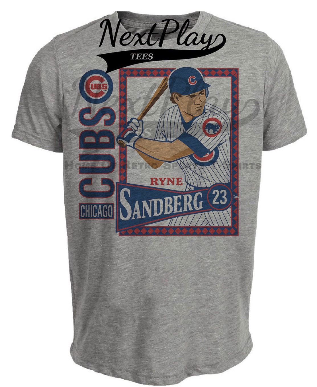 Chicago Cubs Ryne Sandberg Retro Baseball 1988 Artwork Heather Gray Sublimated T-Shirt