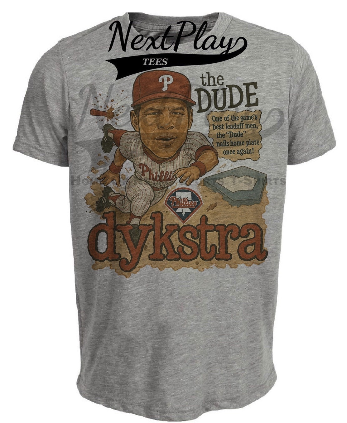Philadelphia Phillies Lenny Dykstra Nails Retro Baseball 1991 Artwork Heather Gray Sublimated T-Shirt
