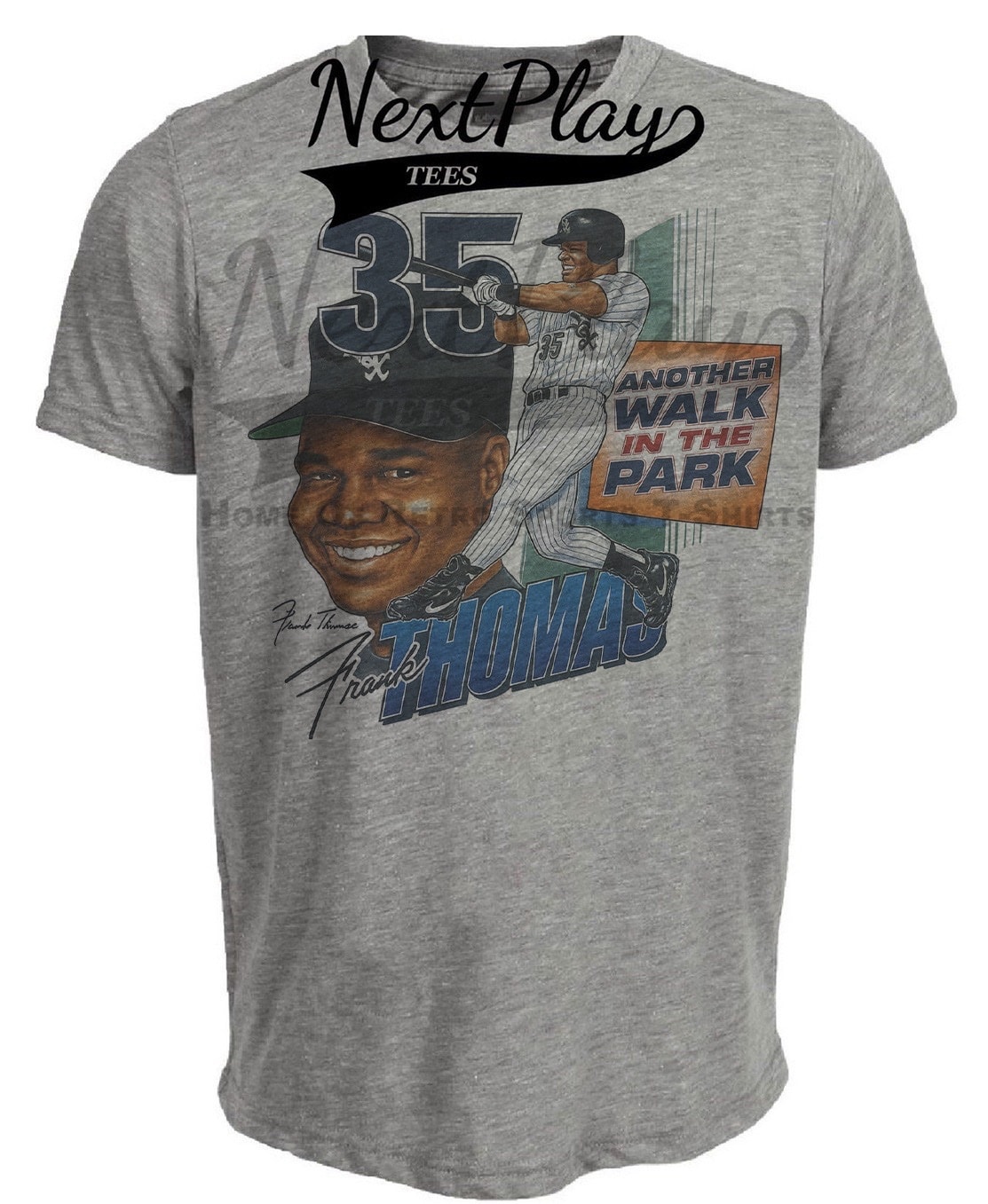 Chicago White Sox Frank Thomas Retro Baseball 1993 Artwork Heather Gray Sublimated T-Shirt