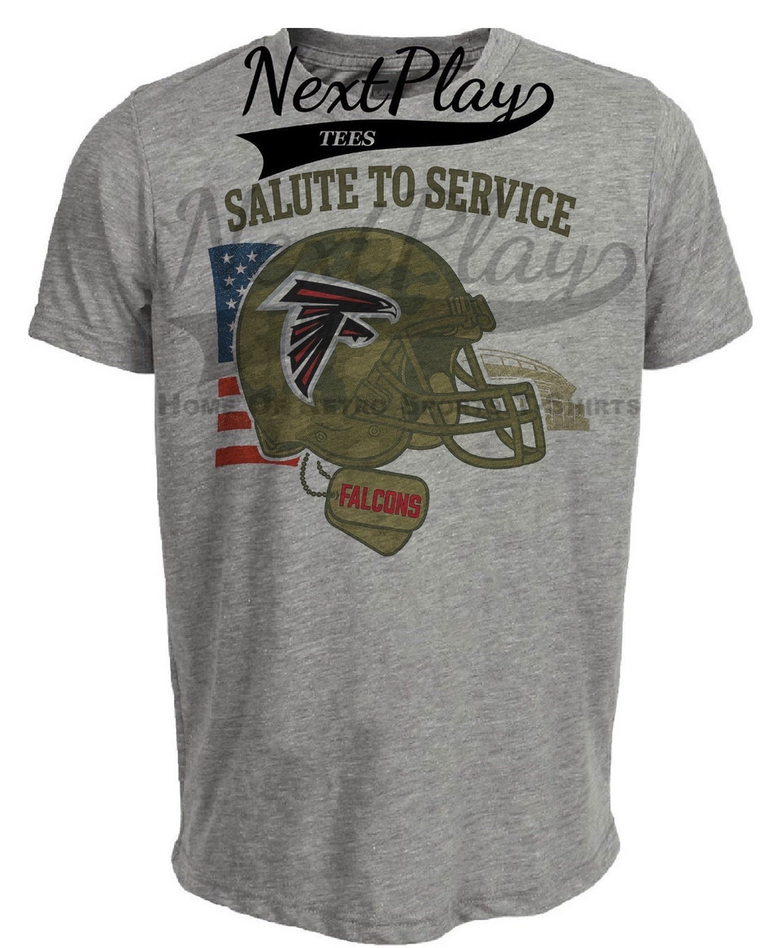 Atlanta Falcons Exclusive Retro Football Service Salute Artwork Heather Gray Sublimated T-Shirt