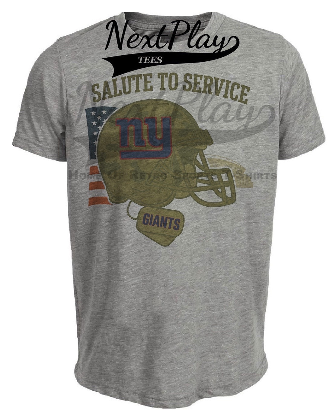 New York Giants Exclusive Retro Football Service Salute Artwork Heather Gray Sublimated T-Shirt