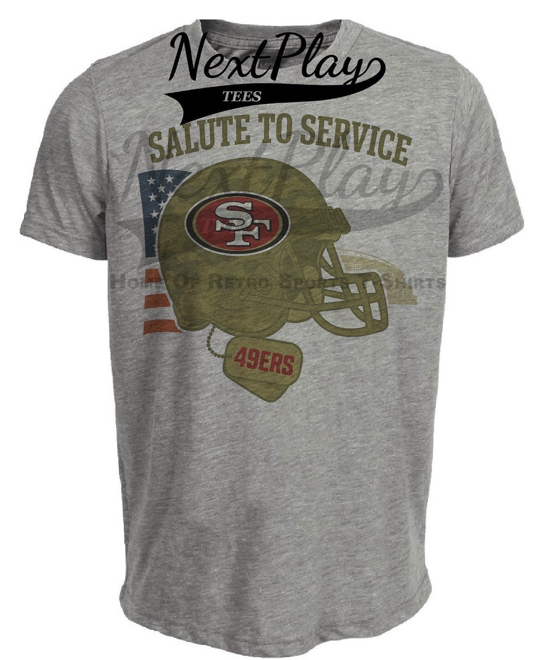 San Francisco 49ers Exclusive Retro Football Service Salute Artwork Heather Gray Sublimated T-Shirt