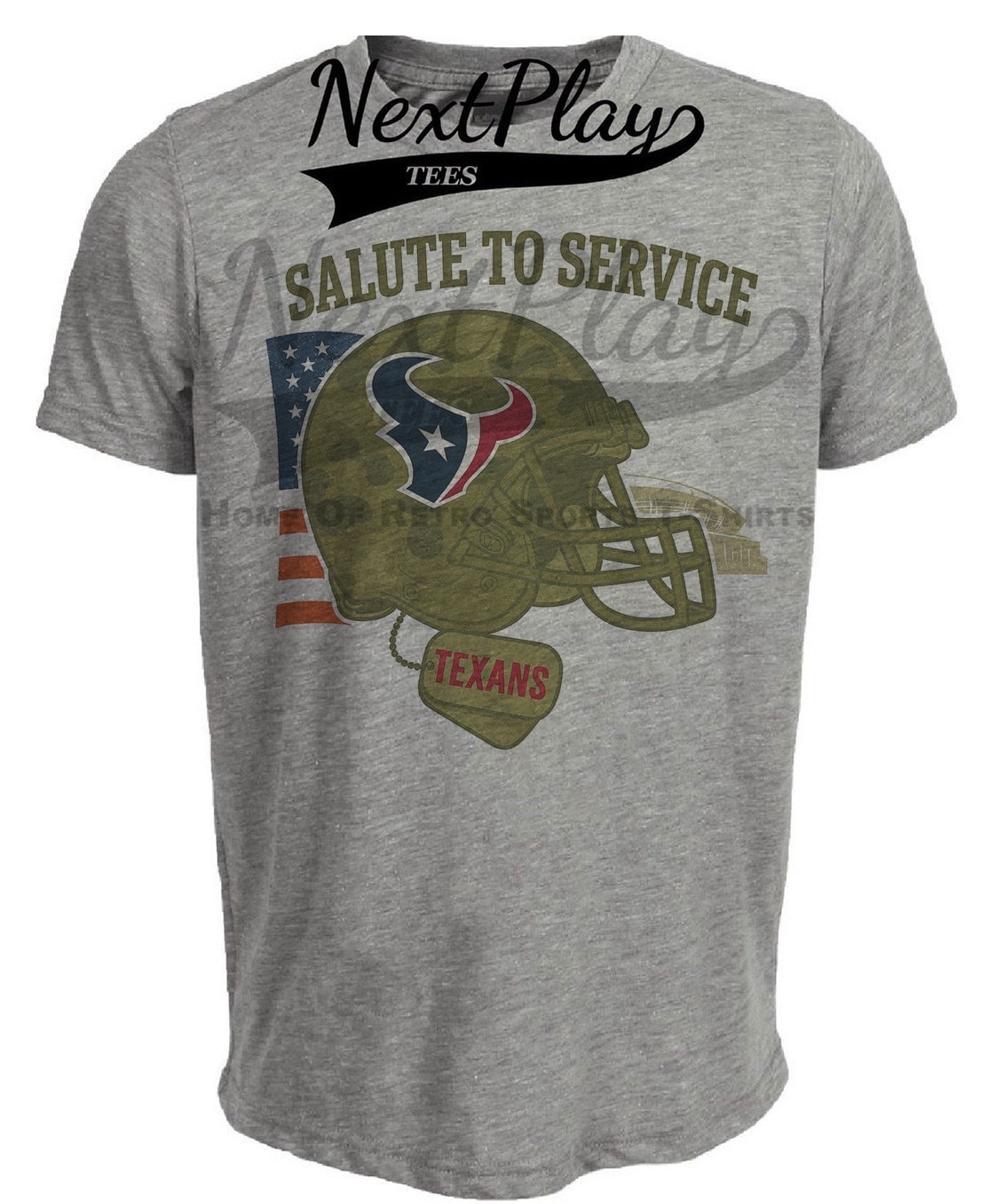 Houston Texans Exclusive Retro Football Service Salute Artwork Heather Gray Sublimated T-Shirt