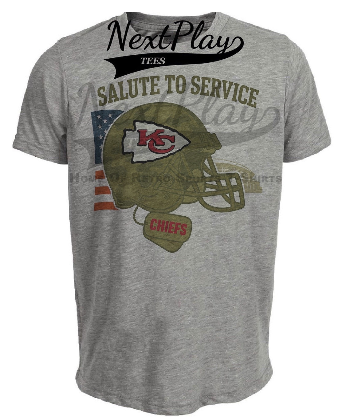 Kansas City Chiefs Exclusive Retro Football Service Salute Artwork Heather Gray Sublimated T-Shirt
