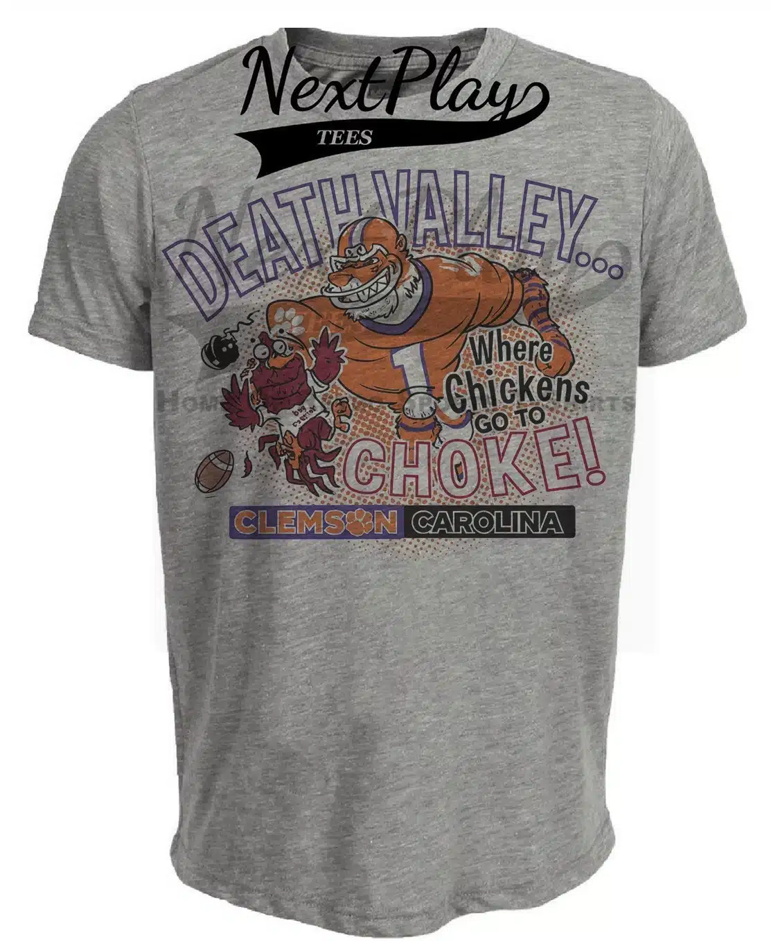 Clemson Tigers vs. South Carolina Gamecocks Retro Rivals Death Valley Football Artwork Heather Gray Sublimated T-Shirt