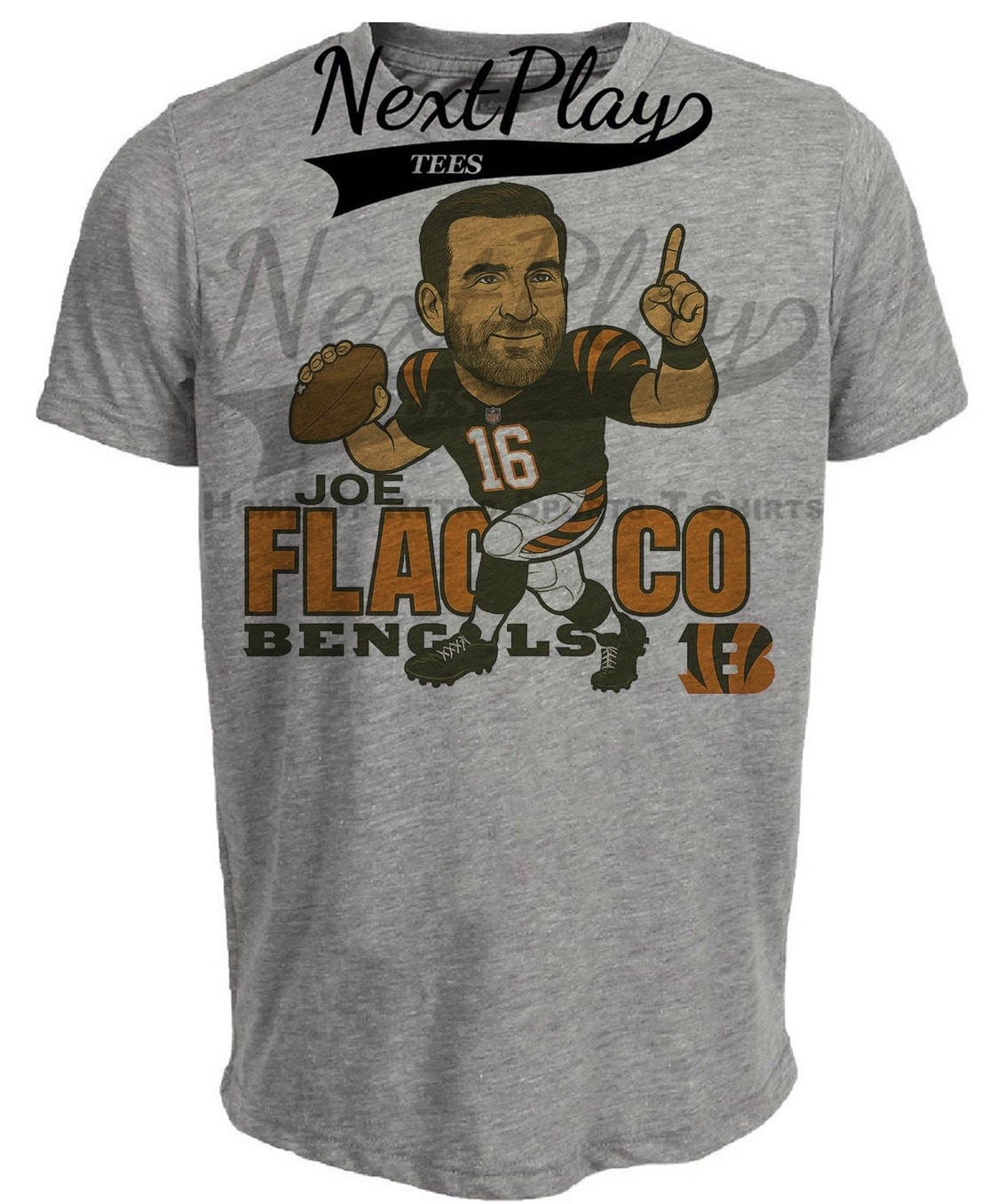 Cincinnati Bengals Joe Flacco Exclusive Caricature Football Heather Gray Sublimated T-Shirt