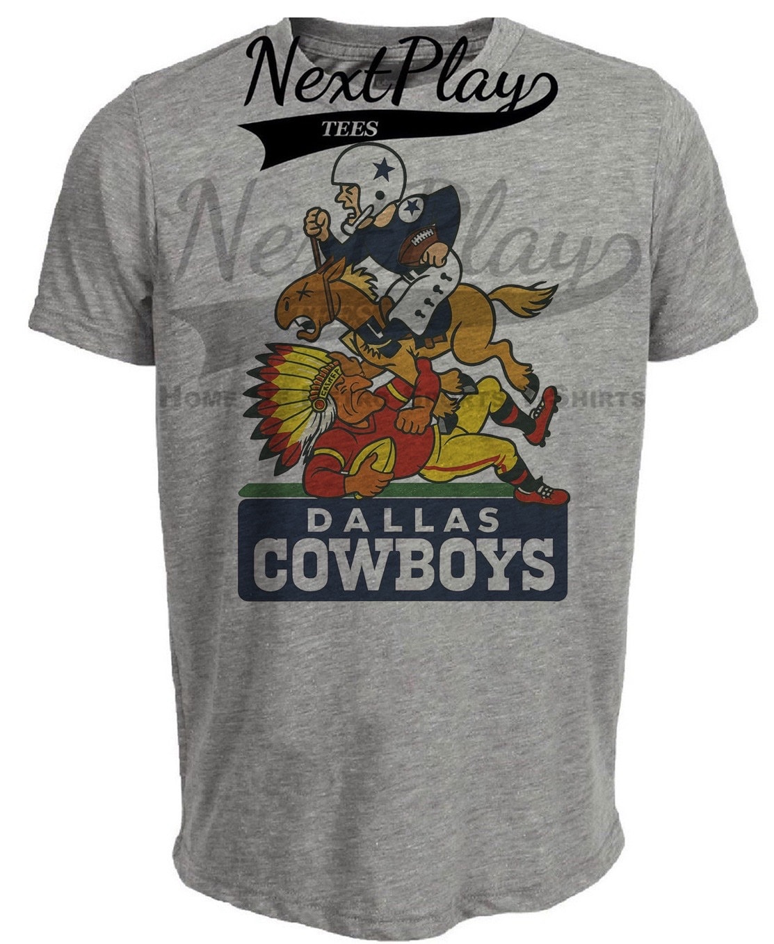 Dallas Cowboys vs. Kansas City Chiefs Thanksgiving Retro Rivalries Football Artwork Heather Gray Sublimated T-Shirt