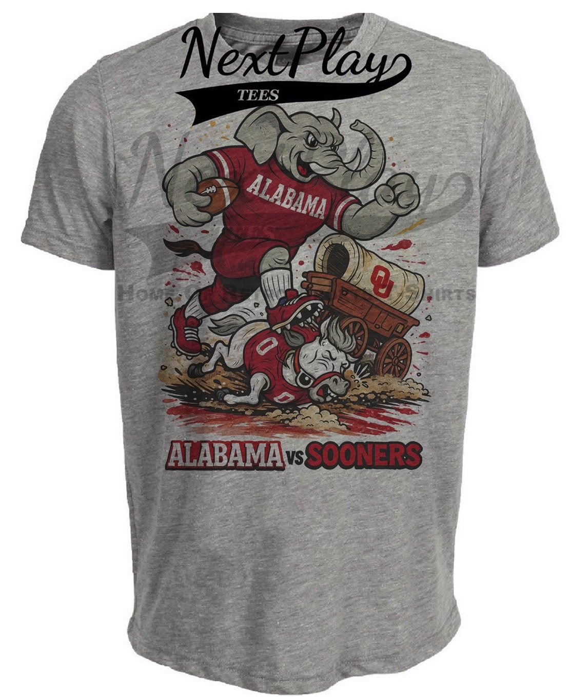 Alabama Crimson Tide vs. Oklahoma Sooners Retro Rivalries Football Artwork Heather Gray Sublimated T-Shirt