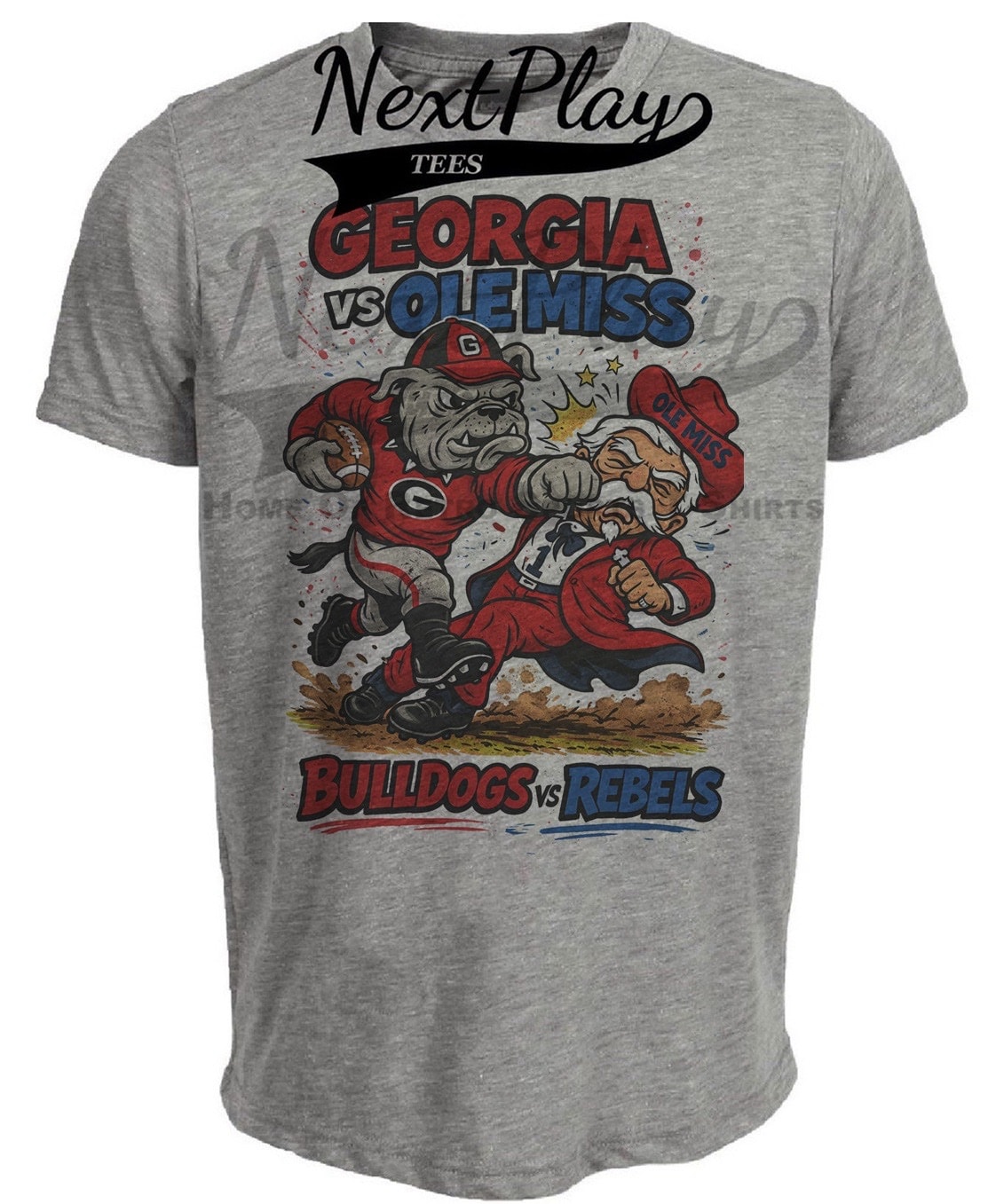 Georgia Bulldogs vs. Ole Miss Rebels Retro Rivalries Football Artwork Heather Gray Sublimated T-Shirt