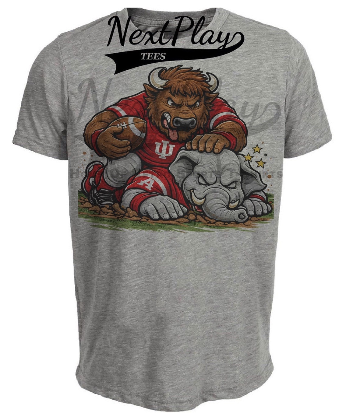 Indiana Hoosiers vs. Alabama Crimson Tide Playoffs Retro Rivalries Football Artwork Heather Gray Sublimated T-Shirt