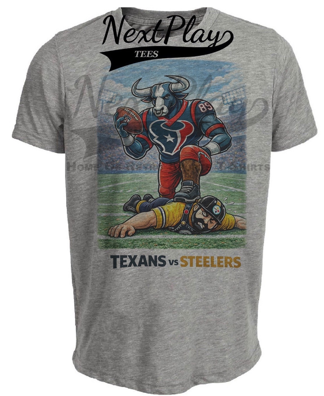 Houston Texans vs. Pittsburgh Steelers Rivals Football Gray Sublimated T-Shirt