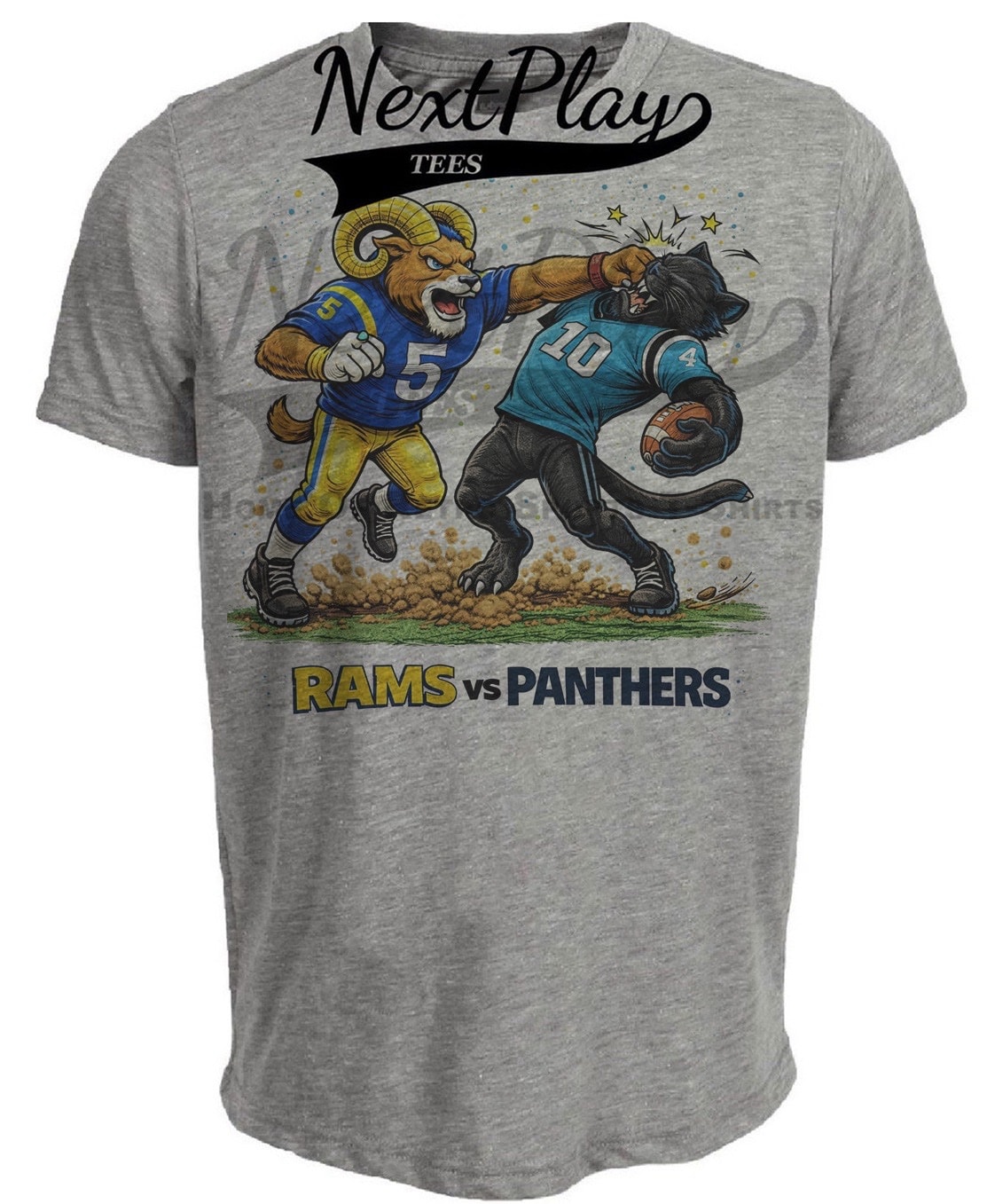 Los Angeles Rams vs. Carolina Panthers Rivals Football Gray Sublimated T-Shirt