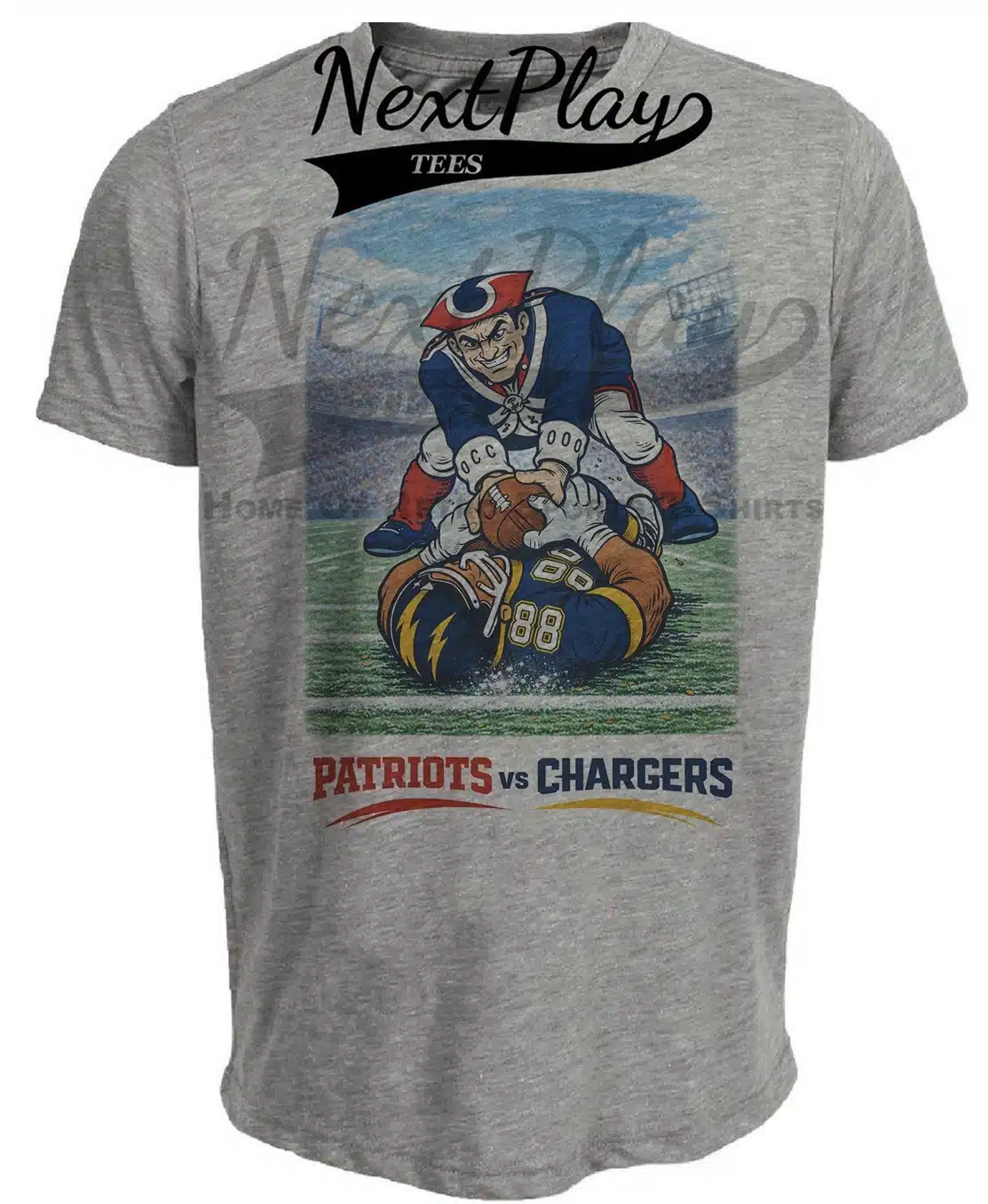 New England Patriots vs. Los Angeles Chargers Rivals Football Gray Sublimated T-Shirt