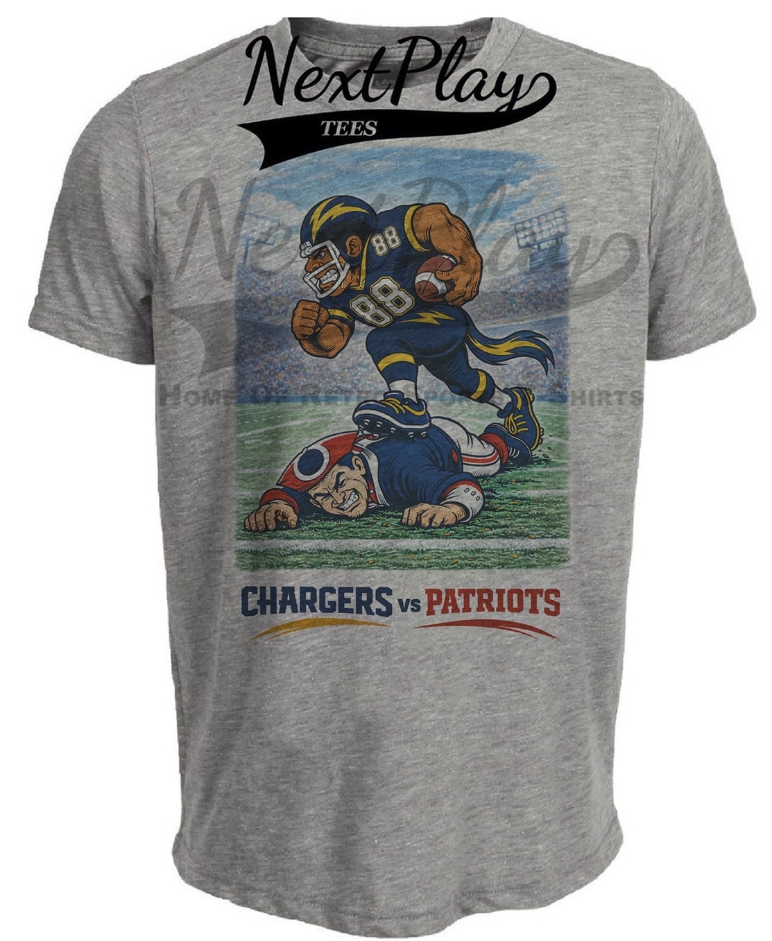 Los Angeles Chargers vs. New England Patriots Rivals Football Gray Sublimated T-Shirt