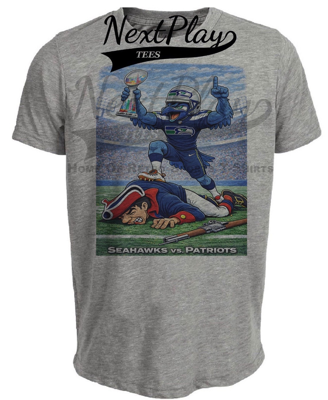 Seattle Seahawks Super Bowl LX Champions Football Gray Sublimated T-Shirt