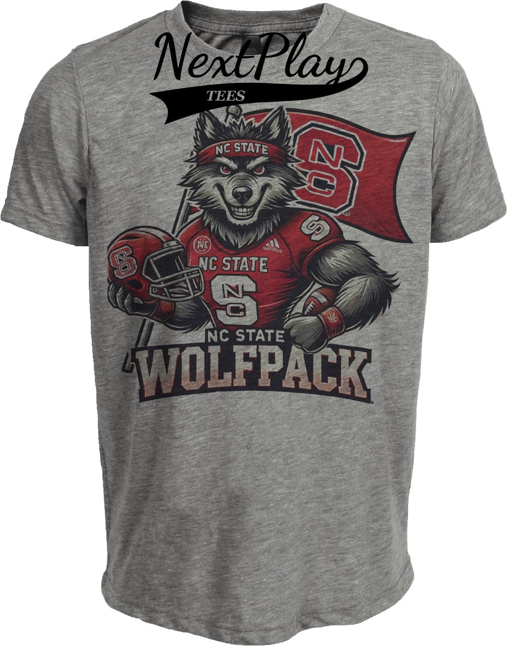 NC State Wolfpack Exclusive Retro Football Flag Artwork Heather Gray Sublimated T-Shirt