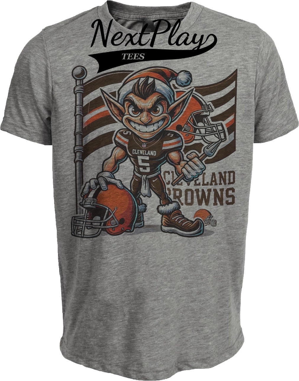Cleveland Browns Exclusive Retro Football Flag Artwork Heather Gray Sublimated T-Shirt