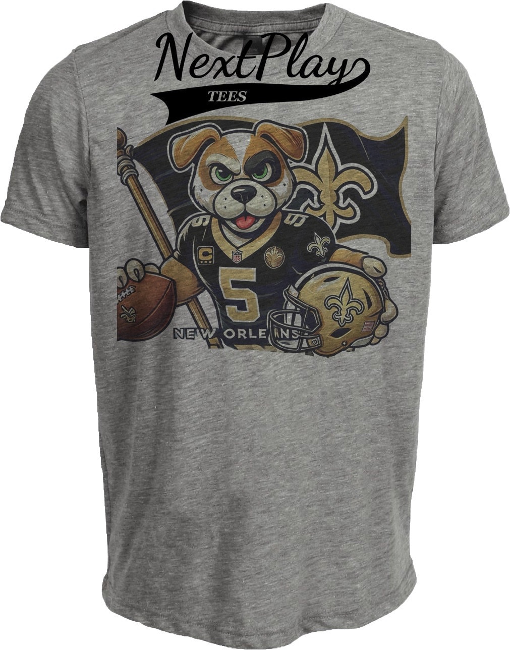 New Orleans Saints Exclusive Retro Football Flag Artwork Heather Gray Sublimated T-Shirt