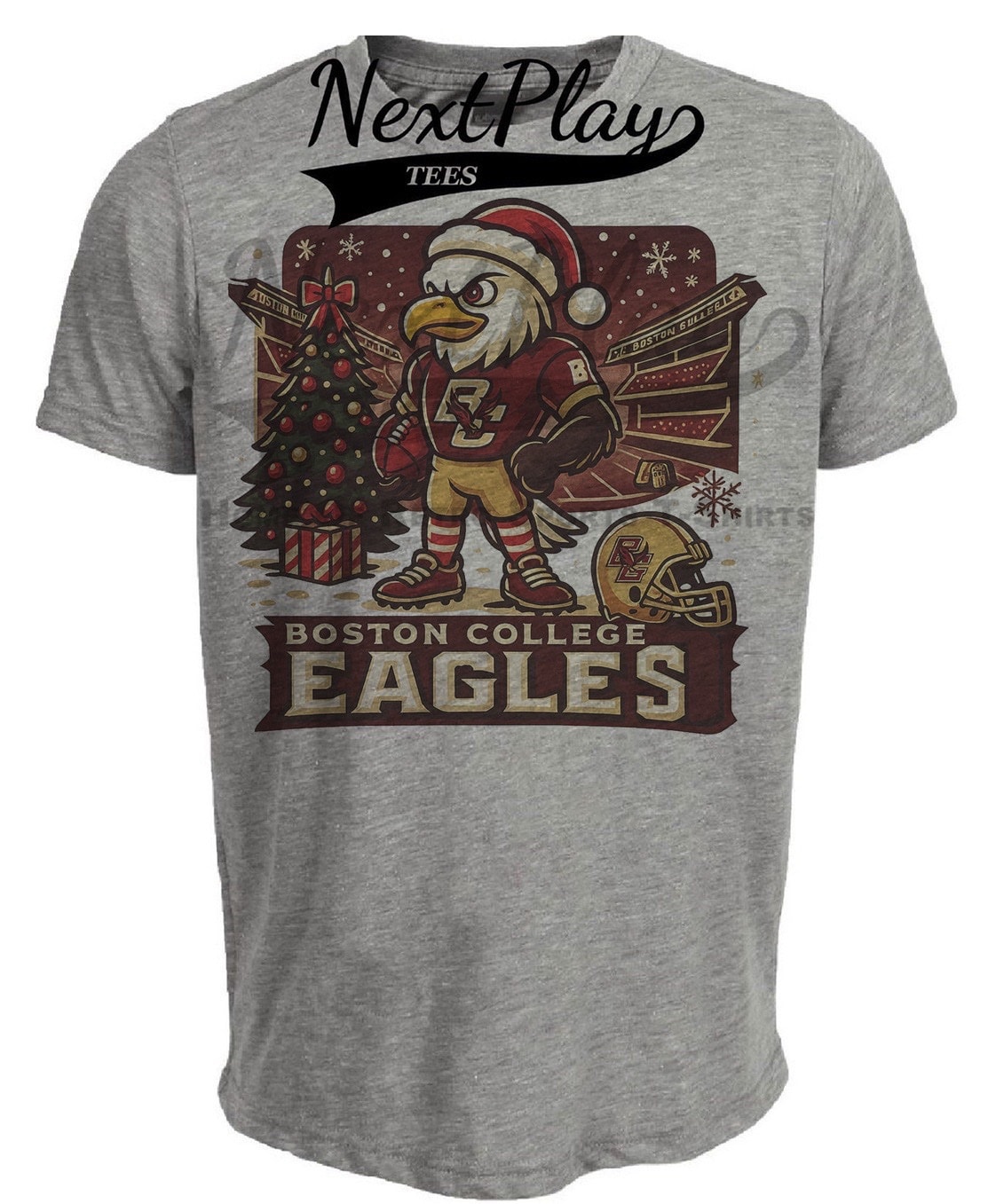 Boston College Eagles Holiday Exclusive Retro Football Artwork Heather Gray Sublimated T-Shirt