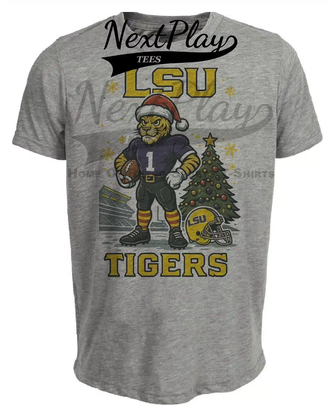 LSU Tigers Holiday Retro Football Artwork Heather Gray Sublimated T-Shirt