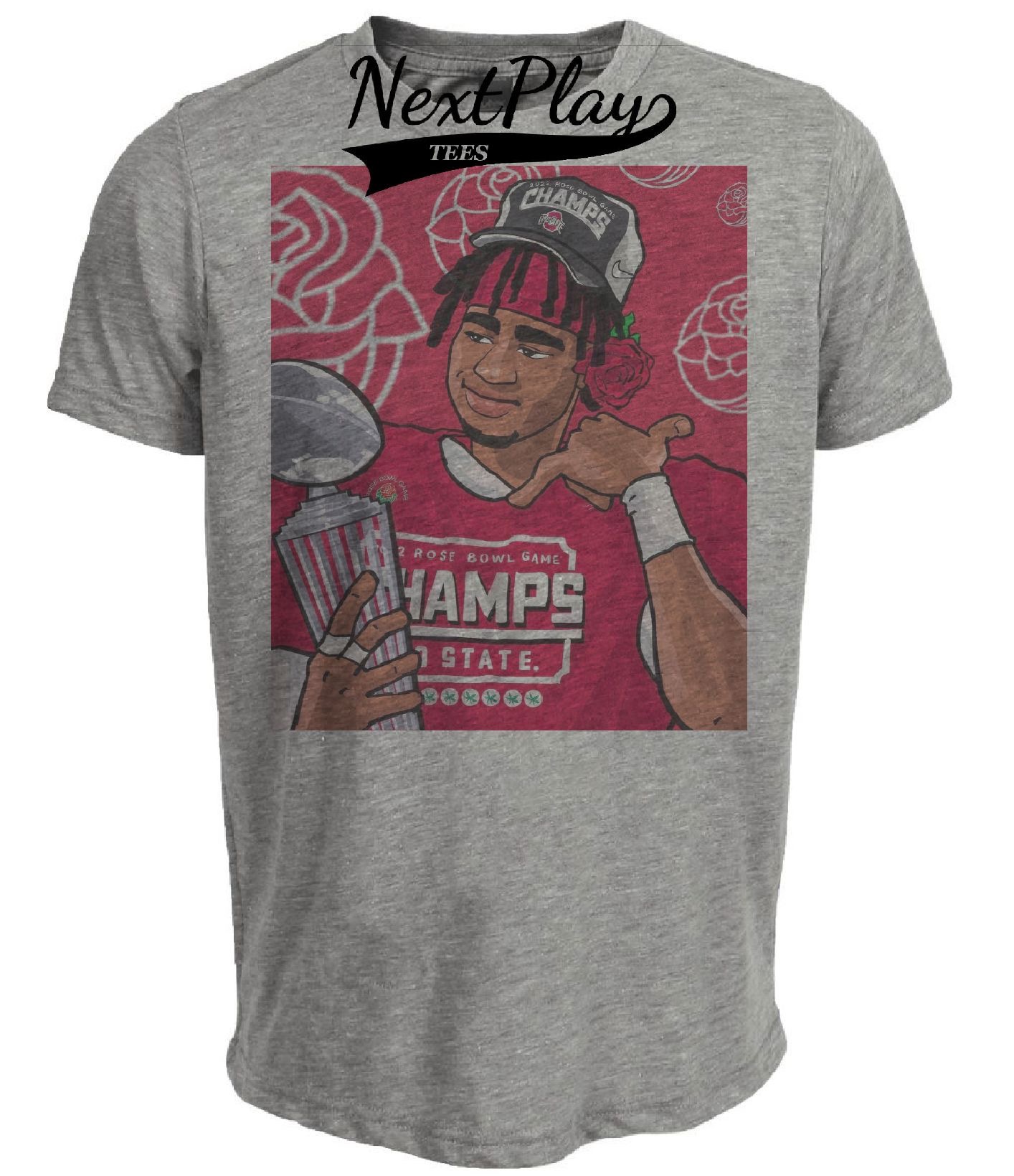 Ohio State Buckeyes CJ Stroud Rose Bowl Champs Exclusive Retro Football Artwork Heather Gray Sublimated T-Shirt